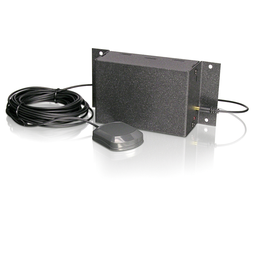 The system includes an amplified exterior GPS antenna. An integrated cable links the antenna to an interior receiver module which retransmits the signal to selected Lathem devices.